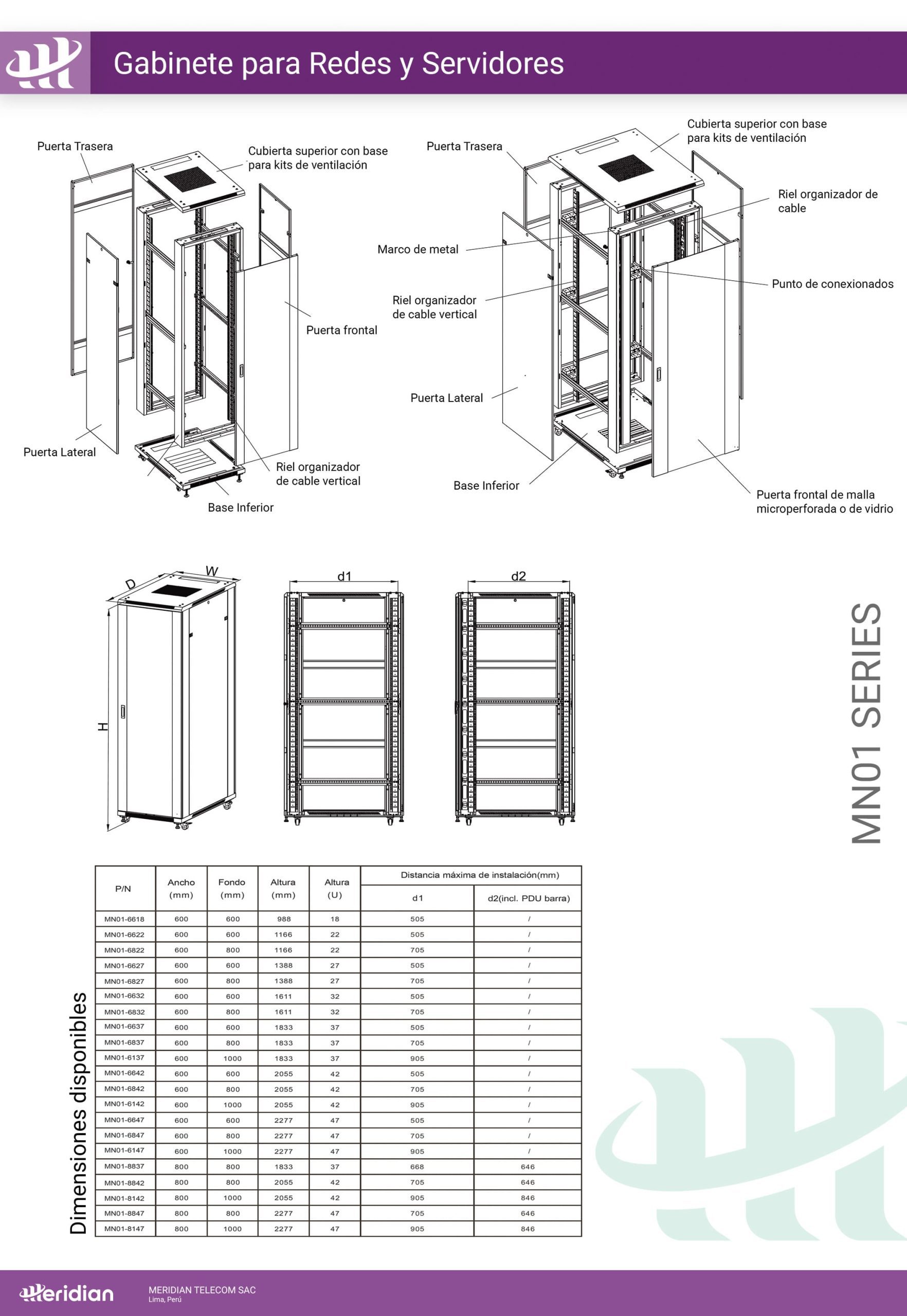 El gabinete de la serie MN01 es un sistema de rack de red económico y eficiente, diseñado específicamente para el cableado y el almacenamiento de equipos de densidad media a alta en entornos de TI y centros de datos.